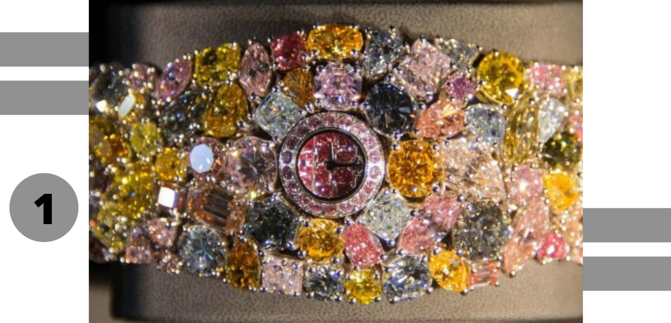 The exclusive name of the brand is enough to do justice towards the estimated net worth of $25 million. This watch is solely studded with diamonds. It consists of a 15-carat pink diamond, a 12-carat blue diamond, and an 11-carat white diamond. Other than that, it further consists of 163 carats of white and yellow diamonds, which further creates an overall eye-soothing and has a very decent look.